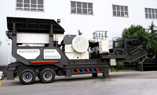 Ⅱ、轮胎式移动破:机组一体化,能够直接作业;车体底板低,自重少;运送转弯半径小,机动灵动;常见的组成配置有:轮胎鄂破+喂料机移动粉碎站、PF反击破+喂料机移动粉碎站、圆锥式破碎机+筛机移动粉碎站、重锤破机移动粉碎站。